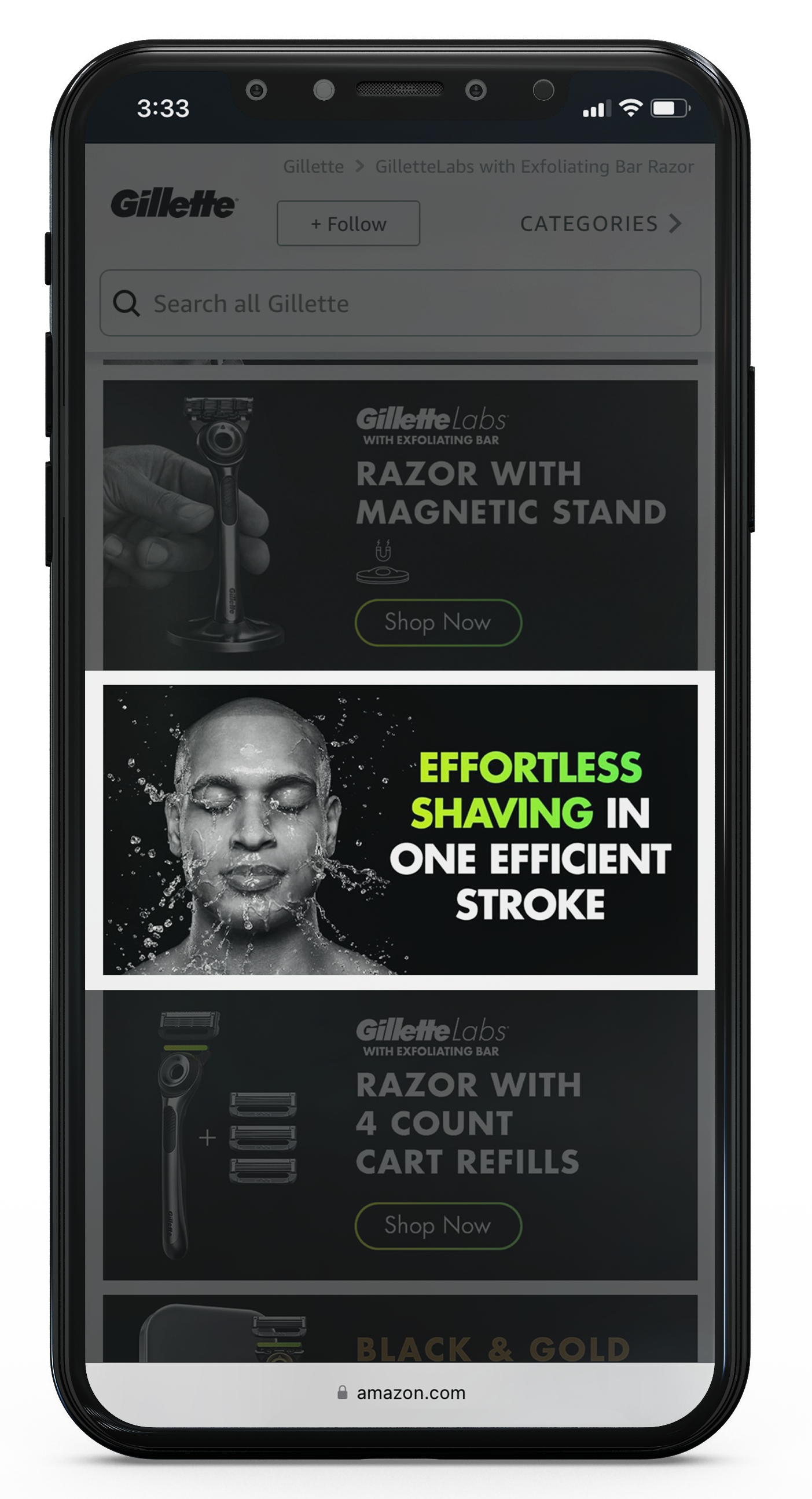 I adapted the the launch campaign artwork for the GilletteLabs Heated Razor x Bugatti collaboration and GilletteLabs with Exfoliating Bar to create paid banners that went on Amazon, Walmart, and Target. For social content creation, I art directed each asset for Facebook, Instagram, Pinterest, and Twitter. I used social metrics to refine future concepts and in doing so, brought more engagement to the social channels during my time. My original layouts for the King C. Gillette Pinterest assets inspired the broader team to use for PDP pages (see below).